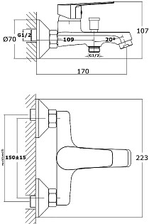 Смеситель для ванны с душем настенный хром Stworki "Берген" S21100CR