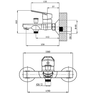 Смеситель для ванны с душем настенный хром Stworki "Колдинг" S32100CR