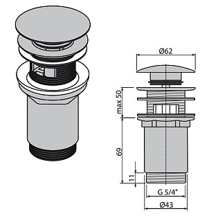 Донный клапан для раковины клик-клак с переливом круглый хром D-Lin D61214-1