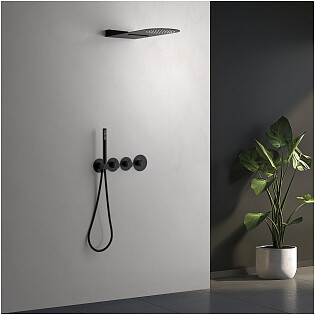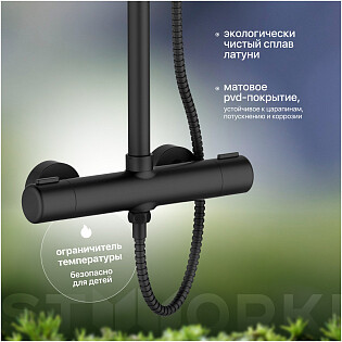 Душевой комплект с верхним душем и смесителем для душа черный Stworki "Орхус" OR-04b