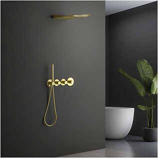 Душевой комплект встраиваемый с верхним душем и термостатом черное золото Timo Saona SX-2350-18SM