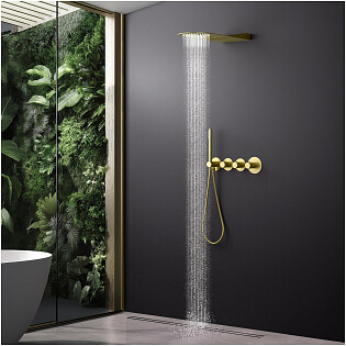 Душевой комплект встраиваемый с верхним душем и термостатом золото матовое Timo Saona SX-2350-17SM