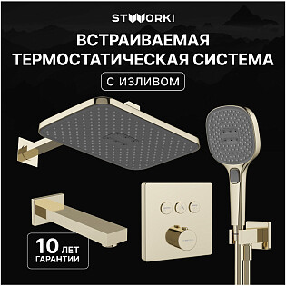 Душевой комплект и изливом глянцевое золото Stworki "Гетеборг" S03240GG