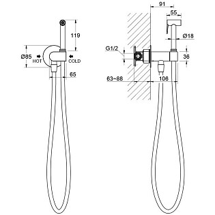 Гигиенический душ с встраиваемым смесителем хром Wasserkraft A06156