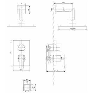 Душевой комплект встраиваемый с верхним душем хром Wasserkraft A12119