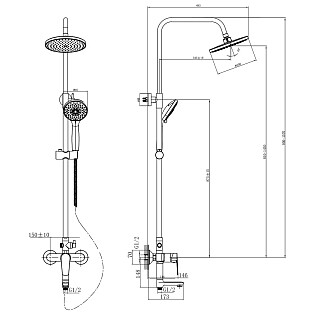 Душевой комплект с тропическим душем хром Stworki "Ларвик" P37268-122-1B-1 37195-000-1BG-IG11