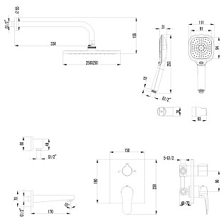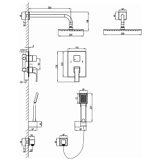 Душевой комплект для душа черный Wasserkraft A20219 SET2210