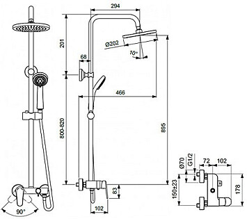 Душевой комплект с тропическим душем и смесителем для душа хром Vidima Balance BA271AA