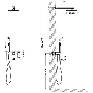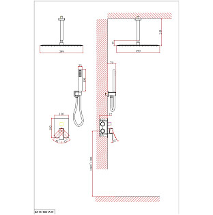 Душевой комплект встраиваемый с верхним душем черный Wasserkraft A5251.219.258