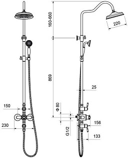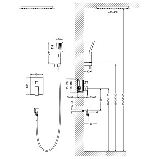 Душевой комплект с верхним душем и лейкой черный Wasserkraft A288.077.078.BM Thermo