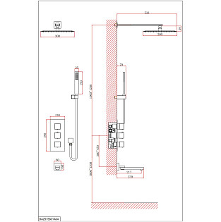 Душевой комплект с верхним душем и изливом черный Wasserkraft A5251.300.301.219.258.302.242.217