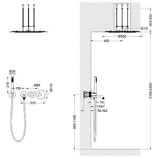 Душевой комплект с верхним душем и лейкой хром Wasserkraft A113.117.058.CH Thermo