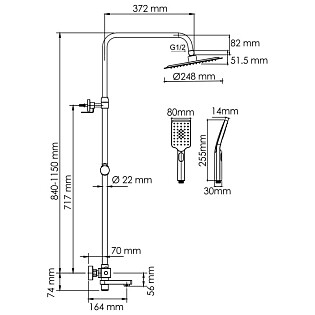 Душевой комплект с верхним душем и лейкой черный Wasserkraft A288.160.078.BM Thermo
