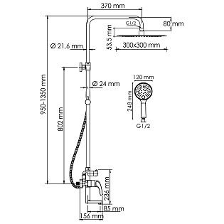 Душевой комплект с верхним душем и лейкой хром Wasserkraft A113.117.059.CH Thermo