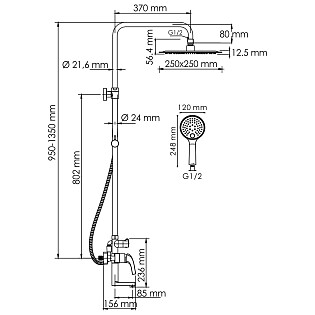 Душевой комплект с верхним душем и лейкой черный, хром Wasserkraft A114.258.218.CB Thermo