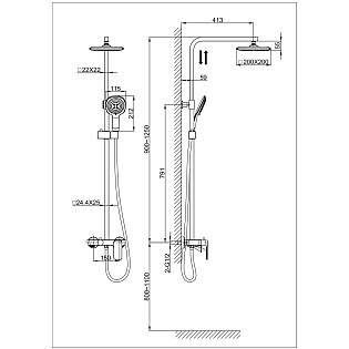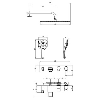 Душевой комплект с верхним душем и смесителем для ванны и душа хром Stworki "Нарвик" NR-06cr