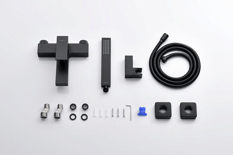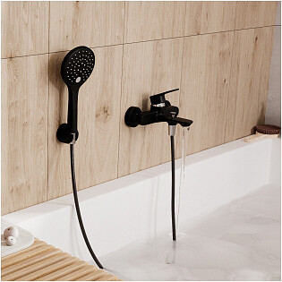 Душевой комплект с лейкой и коротким изливом черный Wasserkraft Elbe 7401