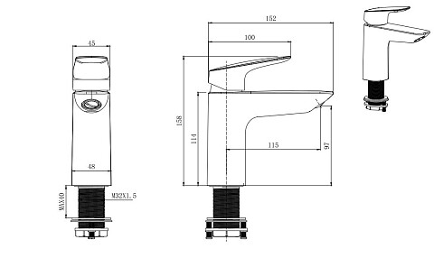 Душевой комплект со смесителем для раковины черный Aquatek "Вега" AQ1030MB