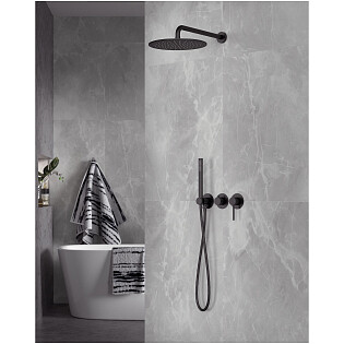 Душевой комплект встраиваемый с верхним душем черный Wasserkraft A12777