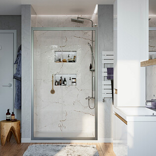 Душевая дверь в нишу раздвижная стеклянная 90 см хром матовый Stworki "Стокгольм" 3GW203TTKK000