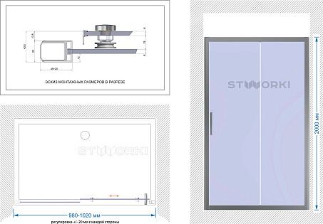 Душевая дверь в нишу стеклянная раздвижная 100 см хром матовый Stworki "Стокгольм" 3GW008TTKK000