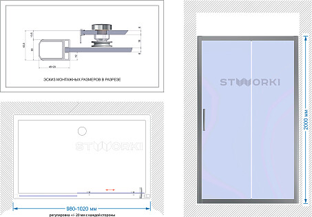Душевая дверь в нишу стеклянная раздвижная 100 см хром глянец Stworki "Стокгольм" 3GW232TTKK000