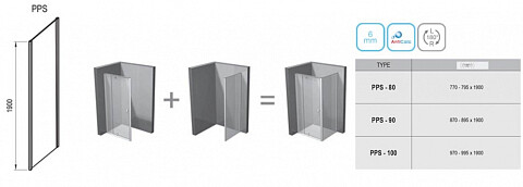 Душевая стенка прозрачная, черная Ravak Pivot PPS-90 90G70300Z1