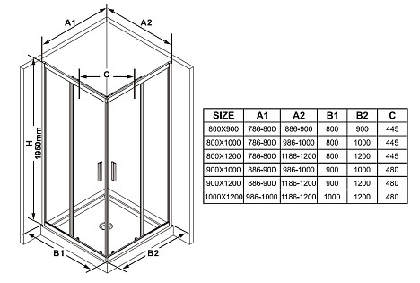 Душевая перегородка 200х90 см прозрачная, черная Wasserkraft Glan 66W39