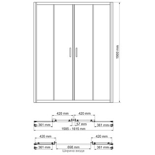 Душевая дверь раздвижная 160х190 см прозрачная, хром Wasserkraft Lippe 45S45