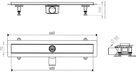 Душевой лоток с перфорированной решеткой 70 см хром Ck Drain AQPP01-70 Steel