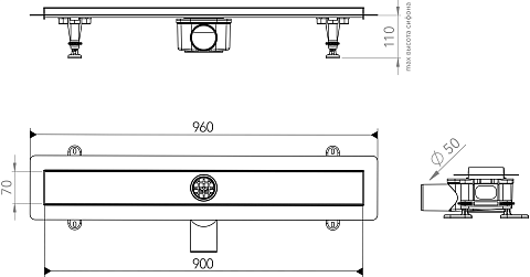 Душевой лоток с перфорированной решеткой 90 см хром Ck Drain AQPP01-90 Steel