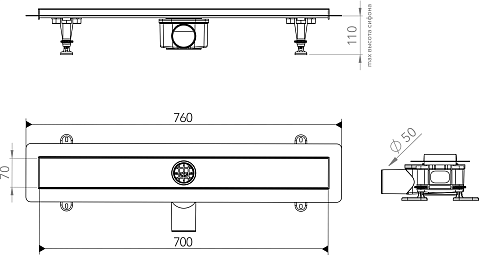 Душевой лоток с перфорированной решеткой 70 см хром Ck Drain AQPL10-70 Stick