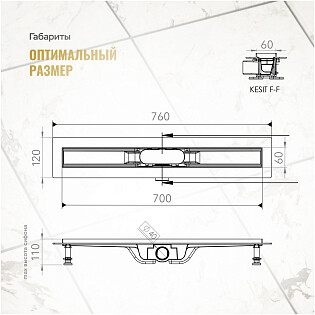 Душевой лоток с двусторонней панелью "plate" под плитку сатин Timo Drain System 900
