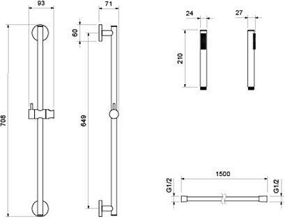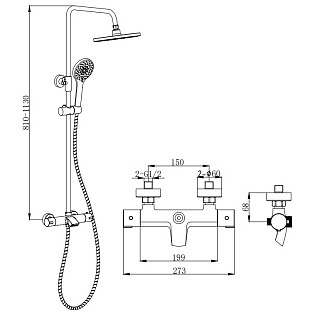 Душевая стойка с держателем и смесителем штанги хром Rossinka RS27-46
