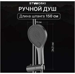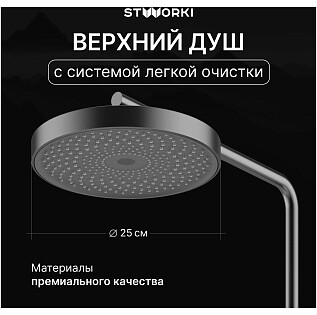 Душевая стойка с верхним душем воронёная сталь Stworki "Лерум" S04170GB