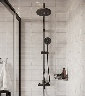Душевая стойка с верхним душем и держателем черная Stworki "Вестфолл" WH626-MB
