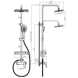 Душевая стойка с верхним душем и шланговым подключением хром D&K DC1005505