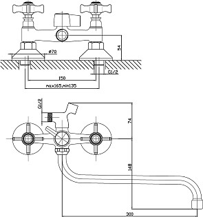 Смеситель для раковины двухвентильный хром Diwo "Переславль" PER-01cr