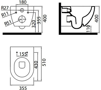 Унитаз подвесной черный Stworki "Ноттвиль" с инсталляцией TECE Base K440407 и кнопкой смыва Now