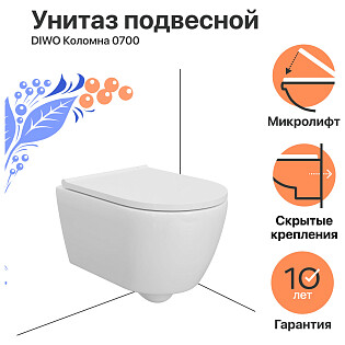 Унитаз подвесной овальный с микролифтом белый Diwo "Коломна" 07003