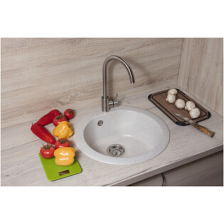 Мойка кухонная кварцевая круглая белая Reflection Core RX1350WH