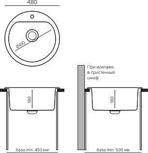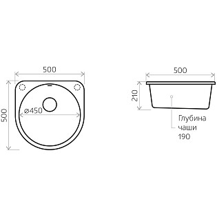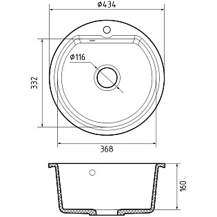 Мойка кухонная из искусственного мрамора круглая 43 см черная Granfest Smart 435
