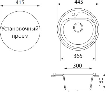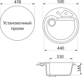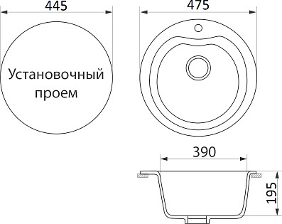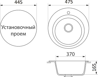 Мойка кухонная из искусственного мрамора круглая 44,5 см черная Domaci "Бьелла" DMC-04