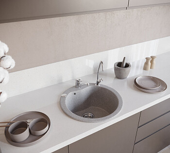 Мойка кухонная круглая мраморная серая Domaci "Бьелла" DMC-08S