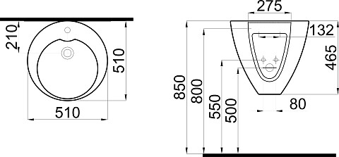 Раковина подвесная керамическая круглая 51 см белая Stworki "Ноттвиль 51" K3101-2505-001-1-0000