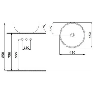 Раковина накладная фарфоровая круглая 45 см белая Vitra Metropole 5940B003-0012