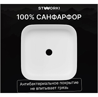 Раковина накладная фарфоровая квадратная 42 см белая Stworki "Ольтен" OLT-01kv