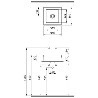 Раковина накладная квадратная фарфоровая белая Point "Меркурий 40" PN43831