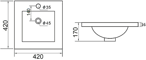 Раковина накладная квадратная 40 см белая Point "Деметра" PN43121