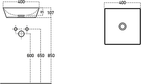 Раковина накладная фарфоровая квадратная 45 cм белая Vitra S20 5463B003-0001